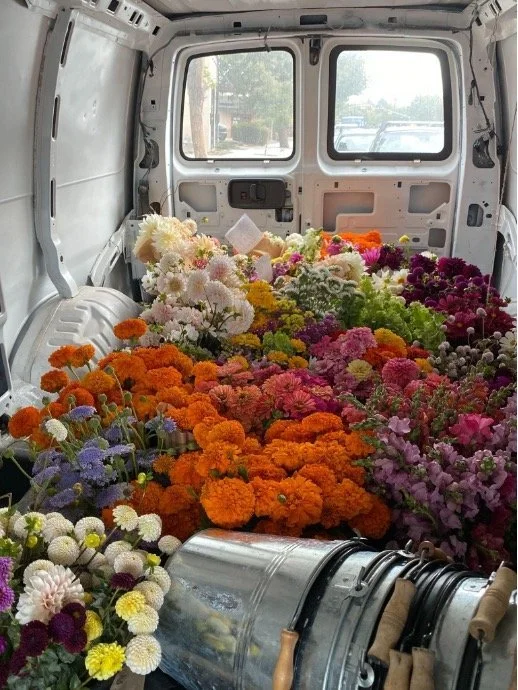 Van full of fresh cut flowers for the downtown San Luis Obispo farmers market. Photo - Lilja Jelks