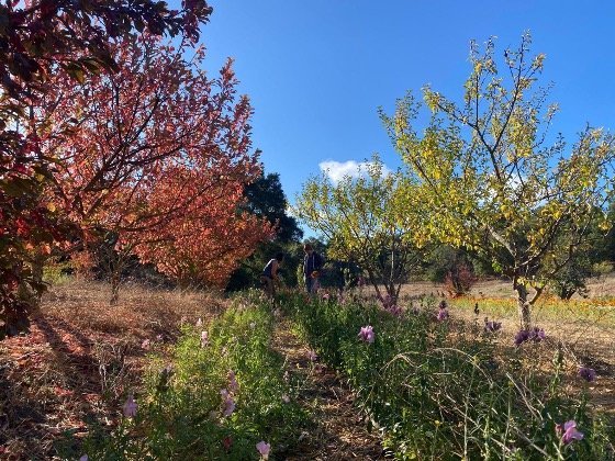 At Farmermaid Flowers, there is a particularly unique window of time (between the first rains) because this is the most fertile time to seed cover crops in the empty fields. Cover crop is a beneficial regenerative agricultural practice that enriches the soil, prevents erosion, improves water retention, increases biodiversity, increases organic matter in the soil and once mowed, can be used as mulch.