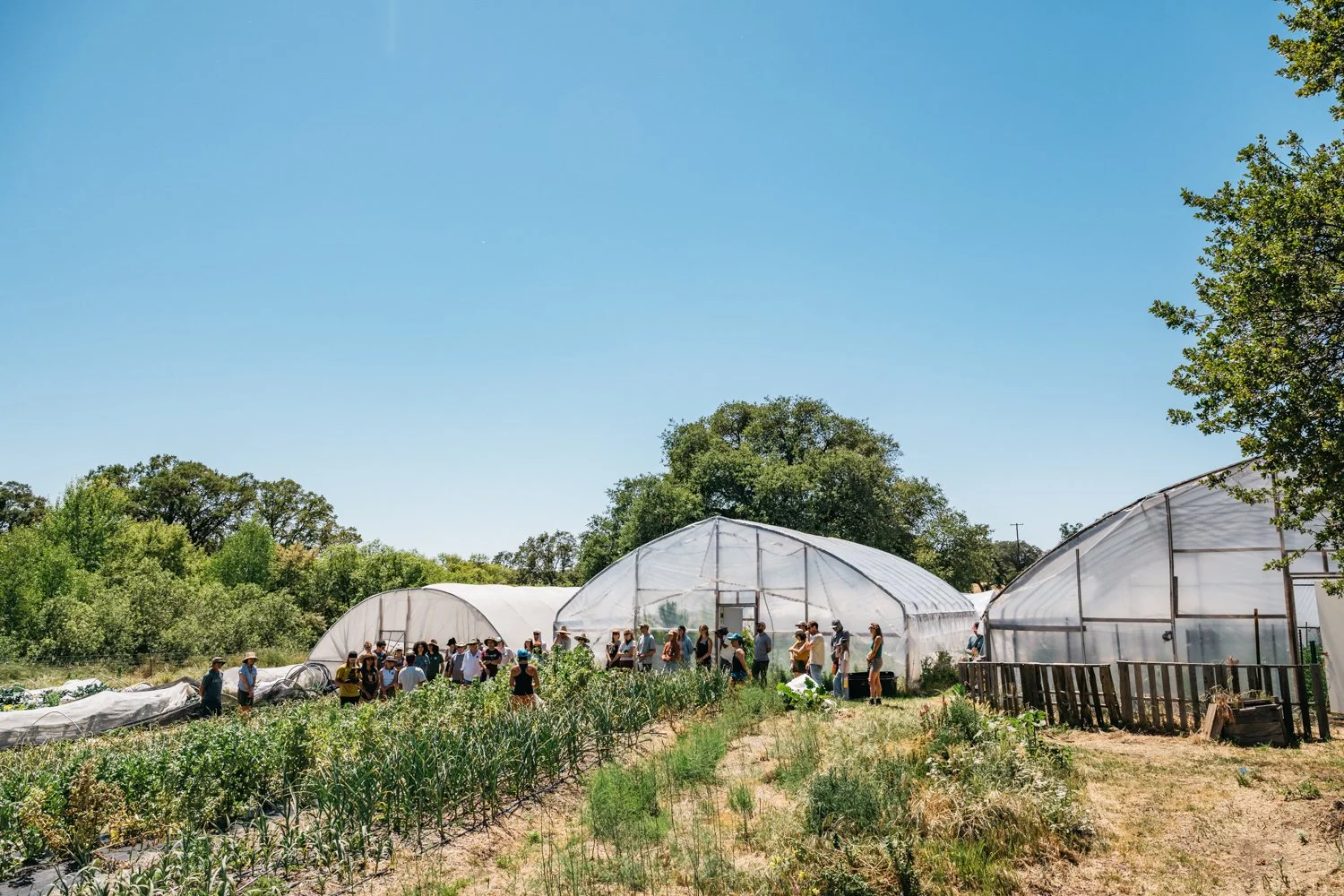 In late autumn at The Blue Heron Project in the Sierra Nevada foothills, the fields don’t go bare when the main harvest is over. Instead, crimson clover and grasses flush across the rows, a low, rustling carpet that keeps the soil wrapped and warm. As the light fades earlier each day, tiny white clover blossoms still hum with bees, and the ground feels springy underfoot.